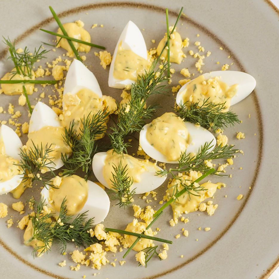 Hard-boiled egg, homemade mayonnaise with chives and dill.