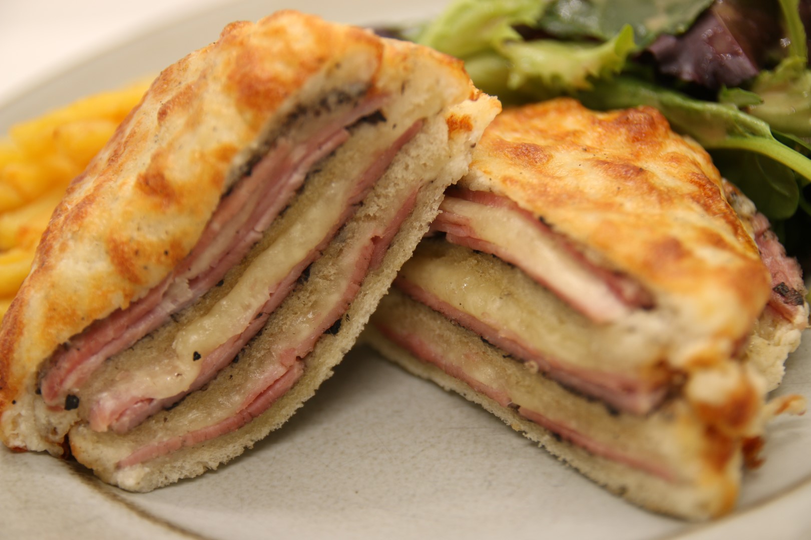 Croque-monsieur with truffle, salad & French fries