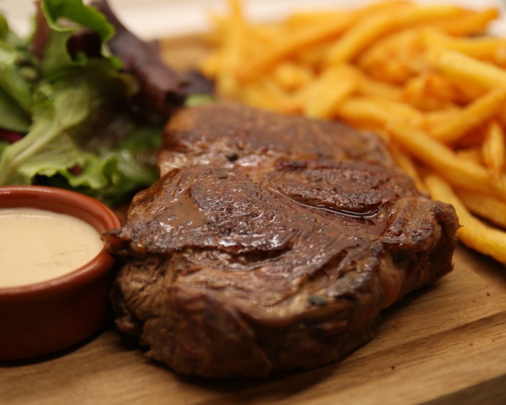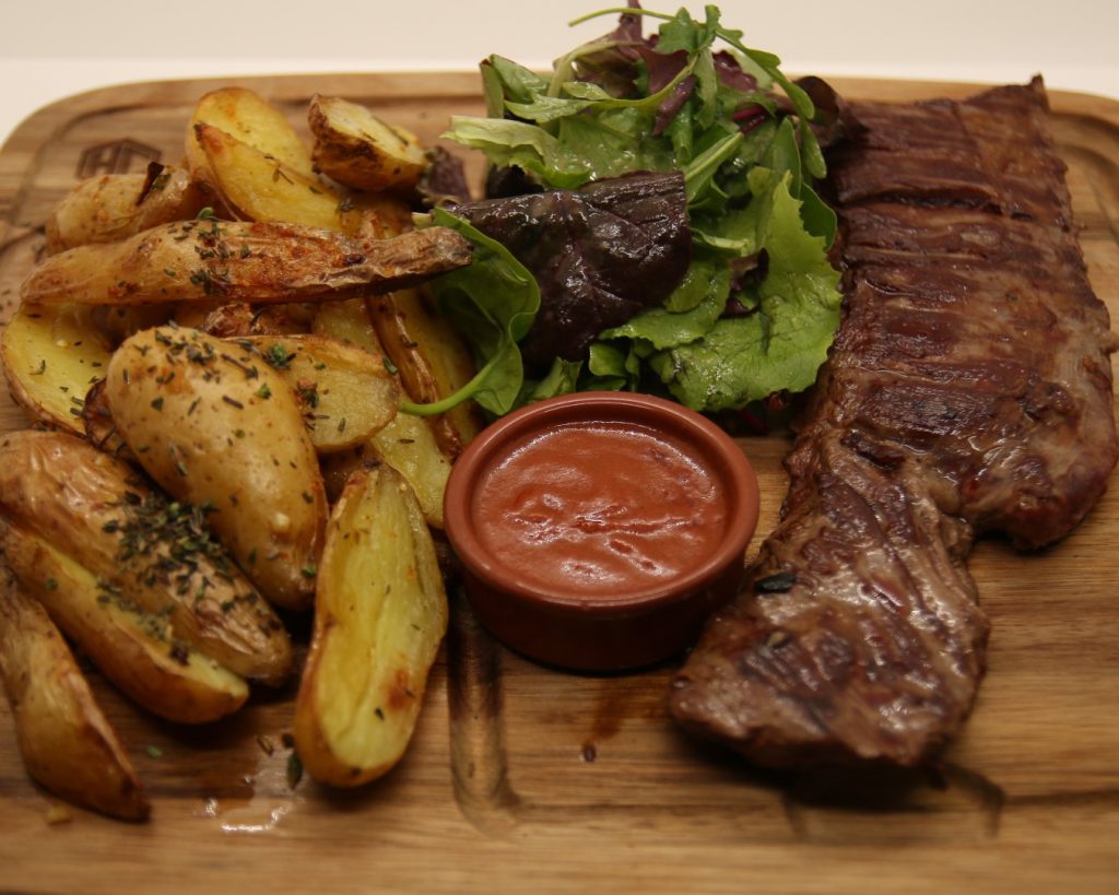 Butcher’s cut, homemade sauce, fresh French fries and salad